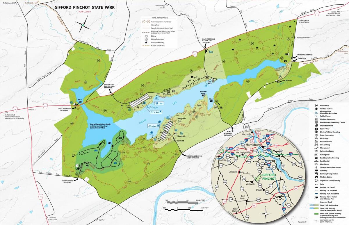 Gifford Pinchot State Park Map – No registration or cost is required for the Susquehanna Riverlands State Park hikes. Other free nearby First Day Hike options include Gifford Pinchot State Park and Codorus State Park in York . Gifford Pinchot Park Service catered exclusively to the expectations and needs of white visitors and it had very few Black employees or visitors. The policies included racially segregated dining .