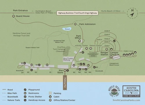 Myrtle Beach State Park Map – South of the busy Myrtle Beach sands you can explore the maritime forest and rent a campsite for the night at Myrtle Beach State Park information and to view park maps, visit the park’s . Huntington Beach State Park sits about 17 miles down the coast from Myrtle Beach State Park. The park is open from 6 a.m. to 6 or 10 p.m., depending on the season. Entrance to the park costs $8 ($ .